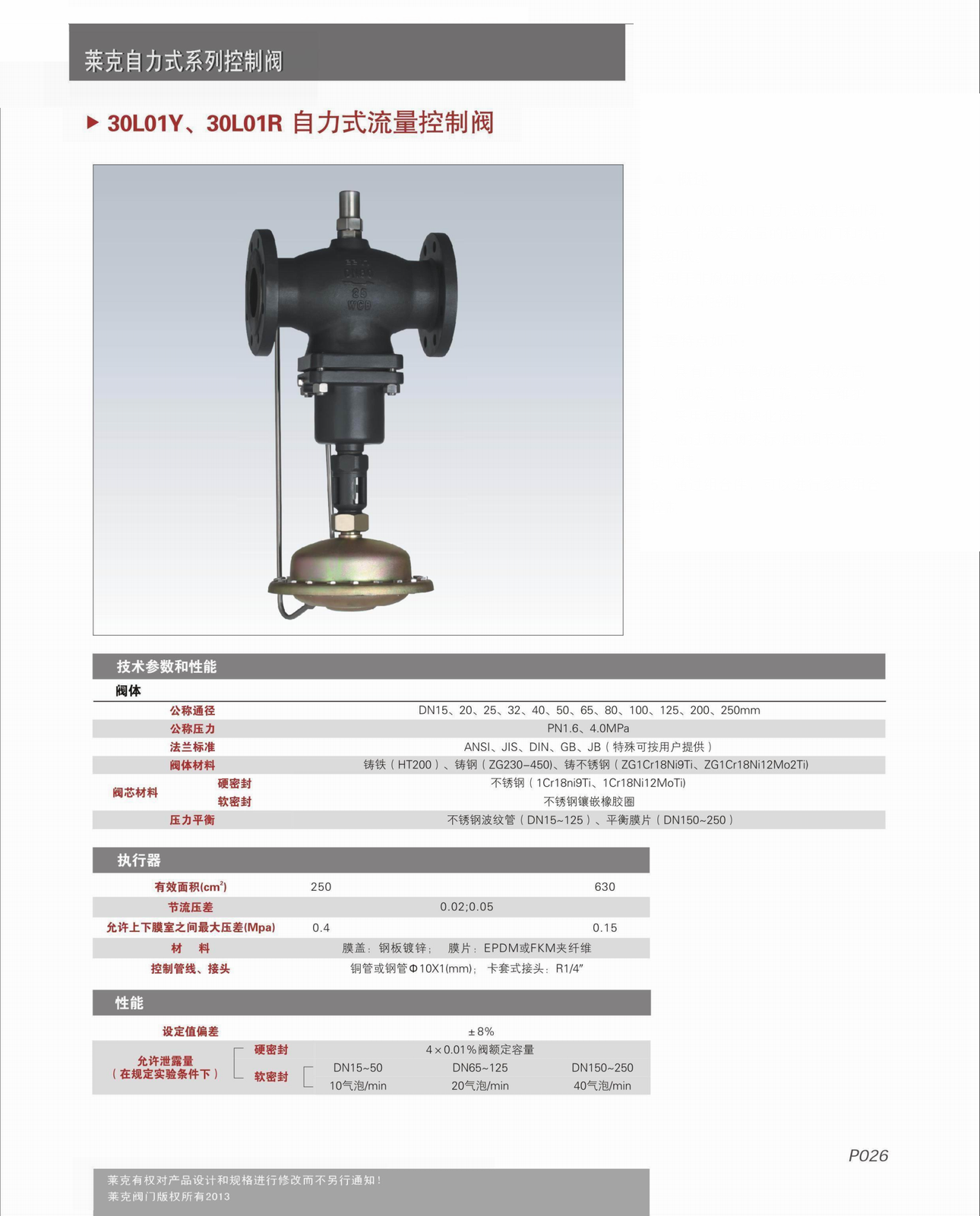 进口自力式流量调节阀性能指标