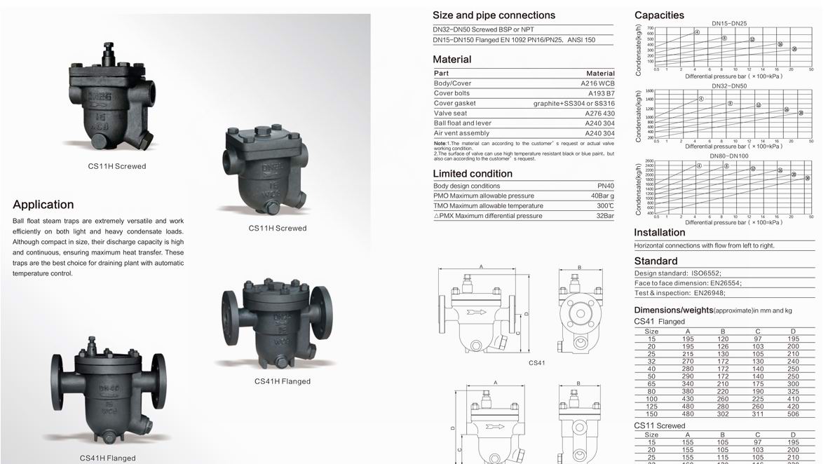 进口自由浮球式蒸汽疏水阀主要零部件材料